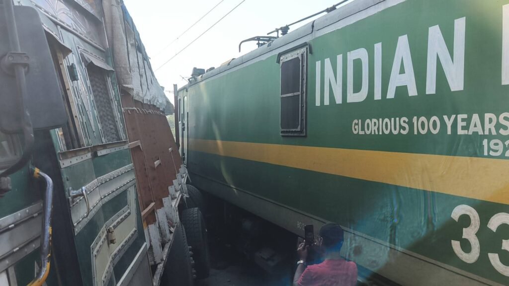 देवघर के नावाडीह रेलवे फाटक के पास आज एक बड़ी रेल दुर्घटना टल गई गोंडा से आसनसोल जा रही ट्रेन जसीडीह से खुलने के बाद नावाडीह फाटक के समीप ट्रक से इंजन टकरा गई हालांकि कोई हताहत नहीं रही और इंजन और ट्रक की टक्कर में दो बाइक भी चपेट में आ गए दोनों बाइक पूरी तरह से क्षतिग्रस्त है वहीं इसकी सूचना रेल प्रशासन को दी गई मौके पर रेल प्रशासन पहुंचकर मामले की जांच कर रही है और रेलवे लाइन को भी क्लियर करने का काम कर रही है इसके अलावा आपको बता दे कि यह देवघर रांची मुख्य सड़क है साथ ही साथ एम्स के जाने के लिए भी एकमात्र सड़क है जिस वजह से दोनों तरफ सड़कों पर लंबी कतार लग गई है लोग काफी प्रभावित हुए हैं वहीं इस घटना के बारे में यात्री ने बताया कि ट्रेन पहले काफी तेज होरन दी और उसके बाद एक जोरदार झटका लगा और फिर ट्रेन रुक गई जब नीचे उतर कर देखा तो ट्रक से ट्रेन की टक्कर हो गई थी वहीं सूत्रों की माने तो रेलवे फाटक खराब था और इसकी सूचना रेलवे अधिकारी को दी गई थी और सिग्नल लाल था हालांकि अब जांच का विषय है रेलवे प्रशासन जसीडीह पुलिस मौके पर पहुंचकर जाम को क्लियर कर रही है साथ ही साथ जांच पड़ताल में जुटी हुई है। आपको बता दे कि इस जगह पर यह पहली रेल घटना नहीं है यहां पर इससे पूर्व में भी इस तरह की घटना इस रेलवे फाटक के पास हो चुकी है